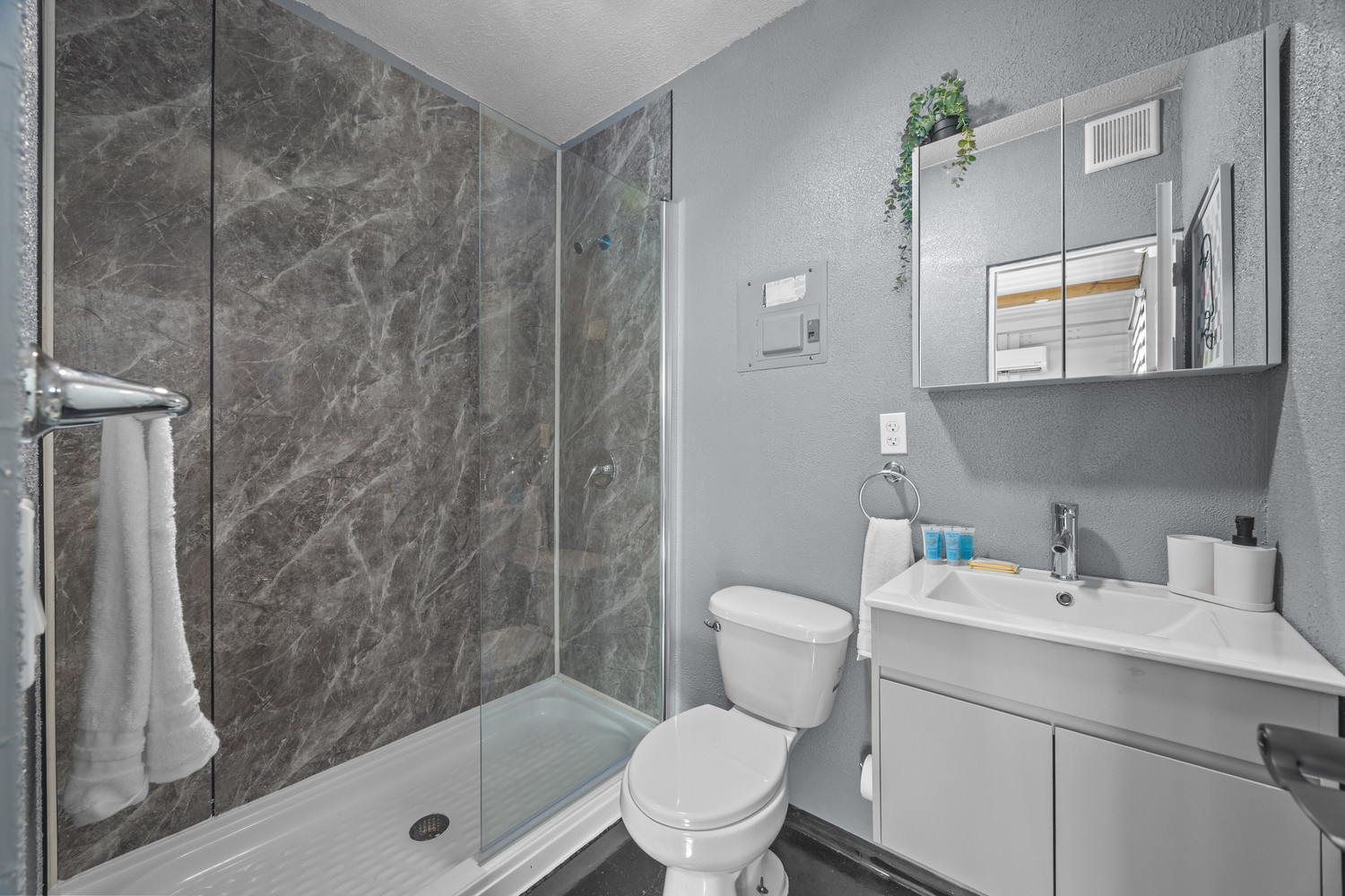 El baño está limpio y bien mantenido, lo que garantiza una experiencia agradable durante toda su estancia. El aire acondicionado en todo el apartamento mantiene el espacio fresco y cómodo incluso en los días más cálidos del Caribe. Los huéspedes también apreciarán el espacio de estacionamiento privado, que ofrece tanto comodidad como tranquilidad.
