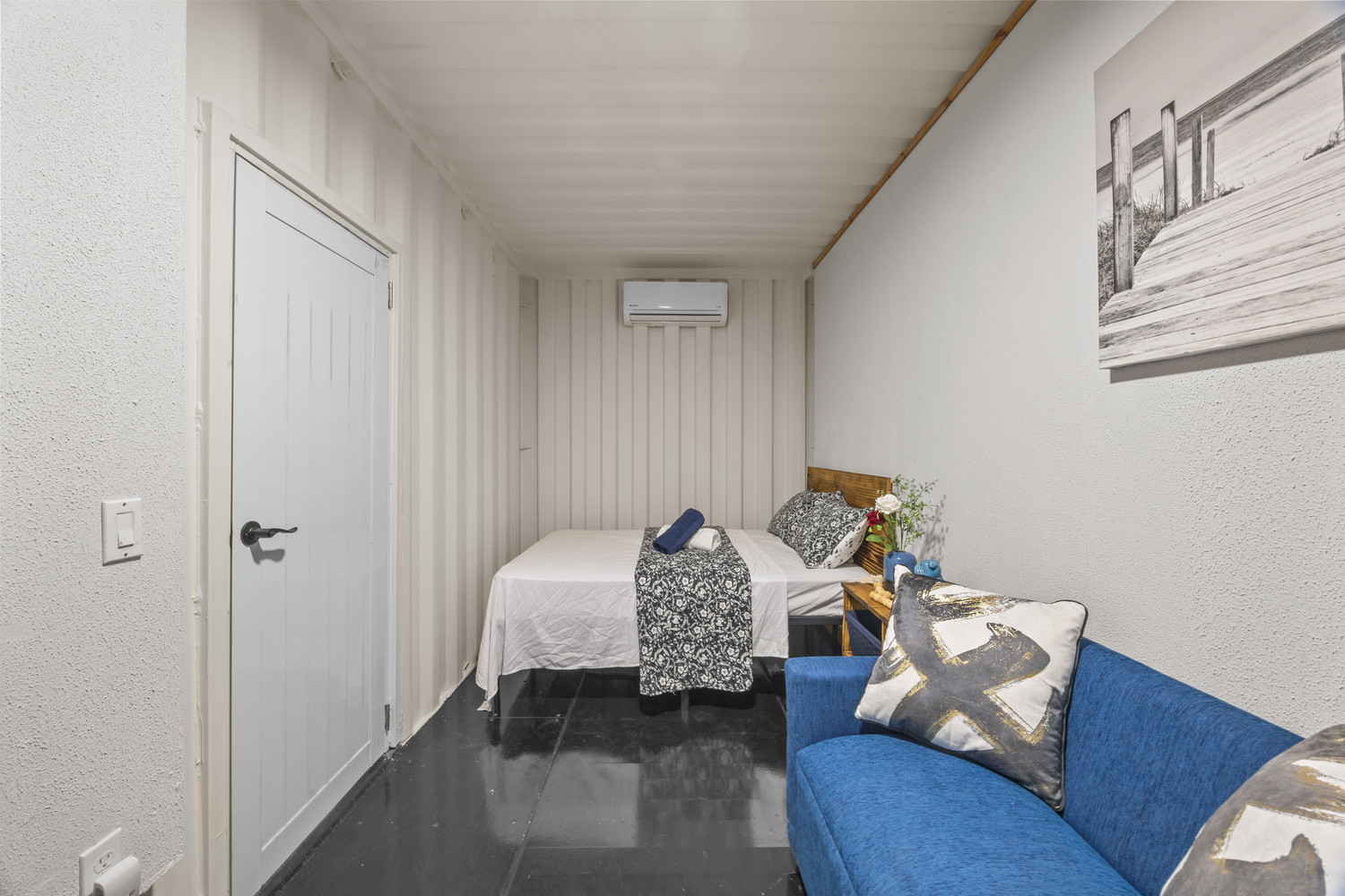 El apartamento cuenta con una cocina americana completamente equipada, un baño privado con ducha y aire acondicionado en todo el espacio, lo que garantiza una estancia relajante y sin preocupaciones. Una plaza de aparcamiento privada dedicada añade una comodidad adicional para los huéspedes que exploran la isla en coche, mientras que la proximidad a la playa permite paseos matutinos sin esfuerzo, baños espontáneos o momentos de puesta de sol inolvidables.