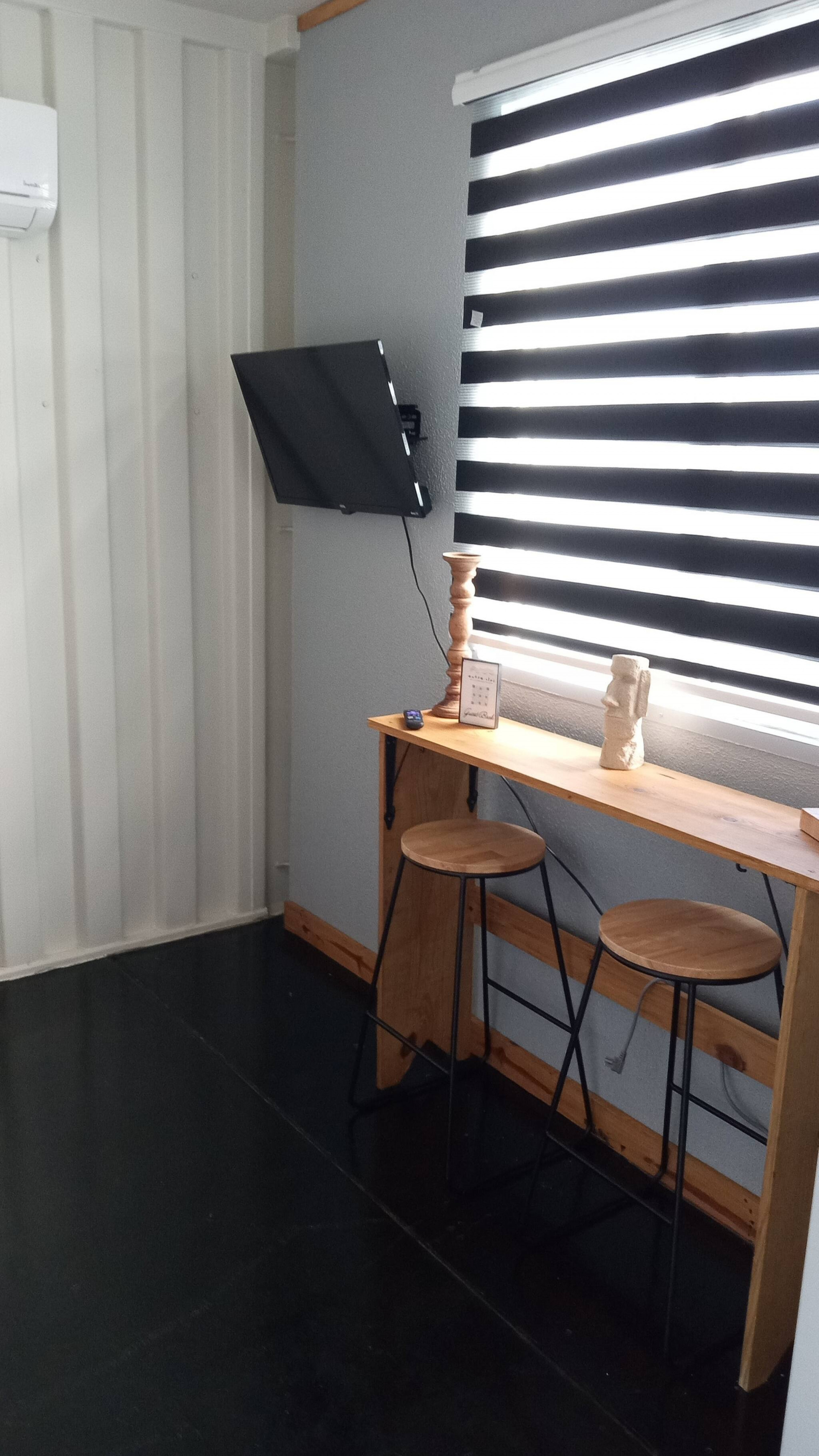 El apartamento cuenta con una cocina moderna y completamente equipada al estilo americano, un baño limpio y funcional con ducha, y un dormitorio cómodo dispuesto para acomodar hasta cuatro huéspedes con facilidad, garantizando noches de descanso durante toda su estancia.