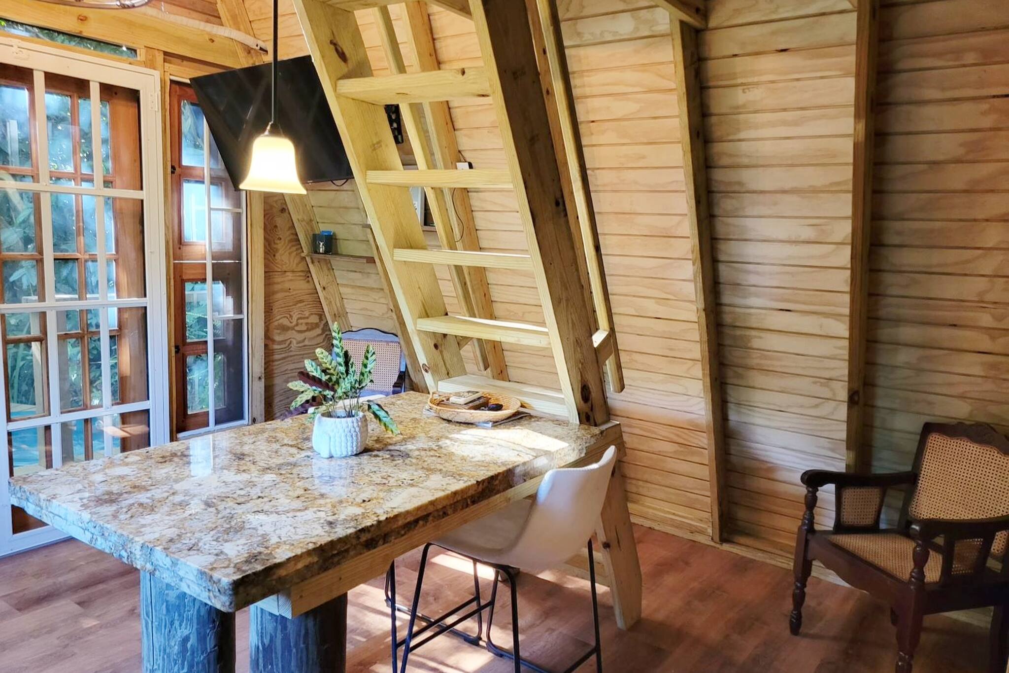 -La cabaña tiene una escalera empinada para acceder al dormitorio del pan (debe estar descalzo en el dormitorio).
