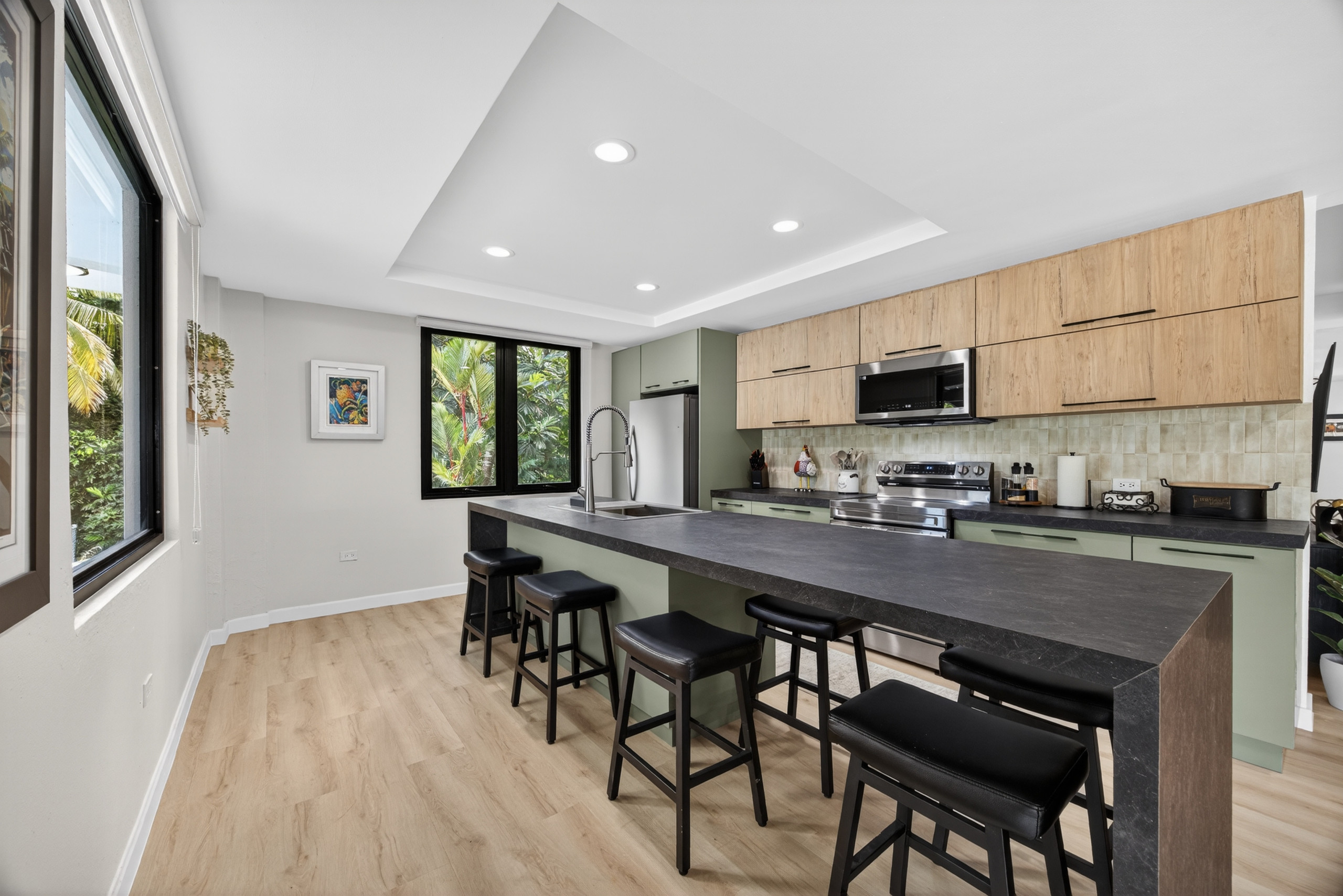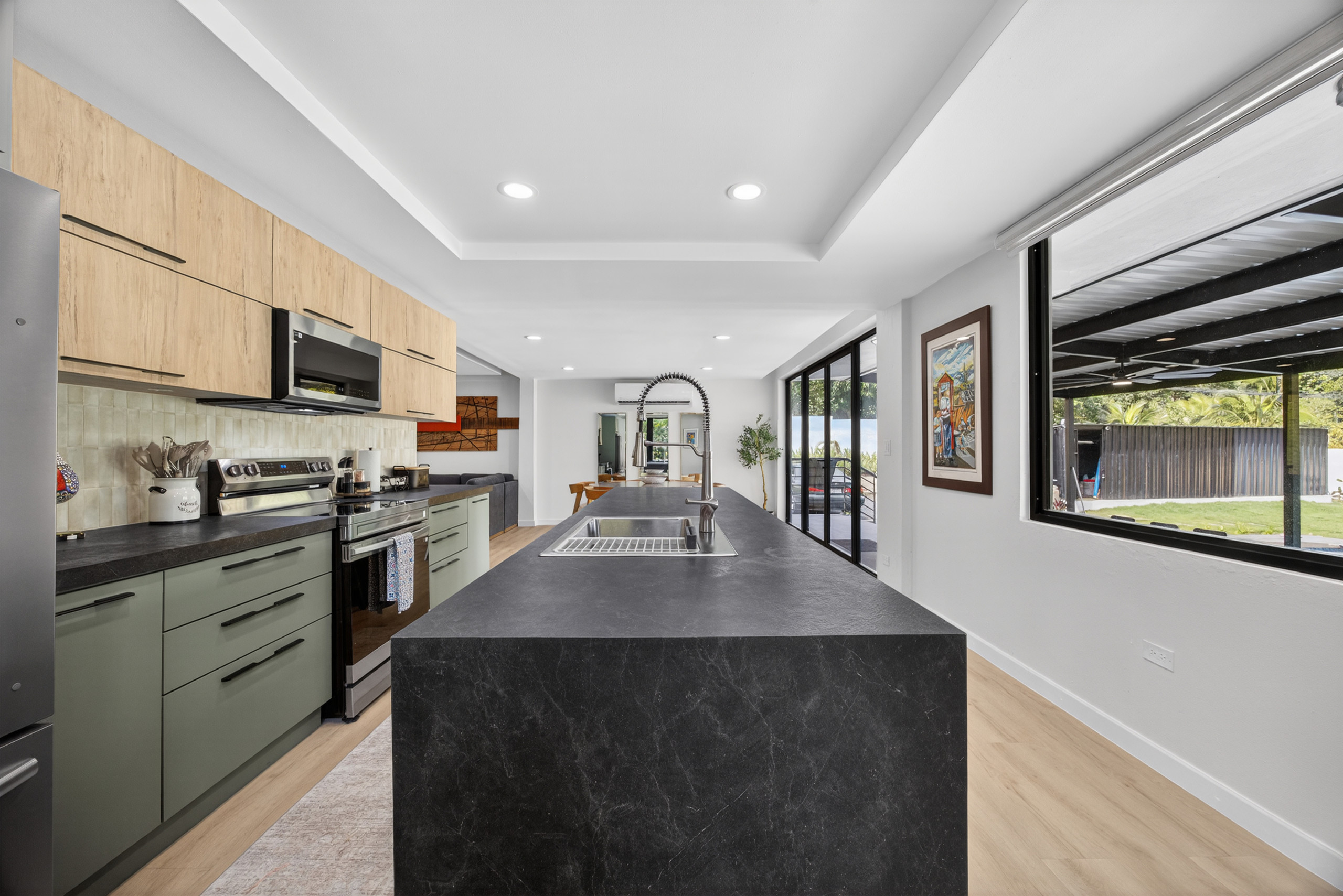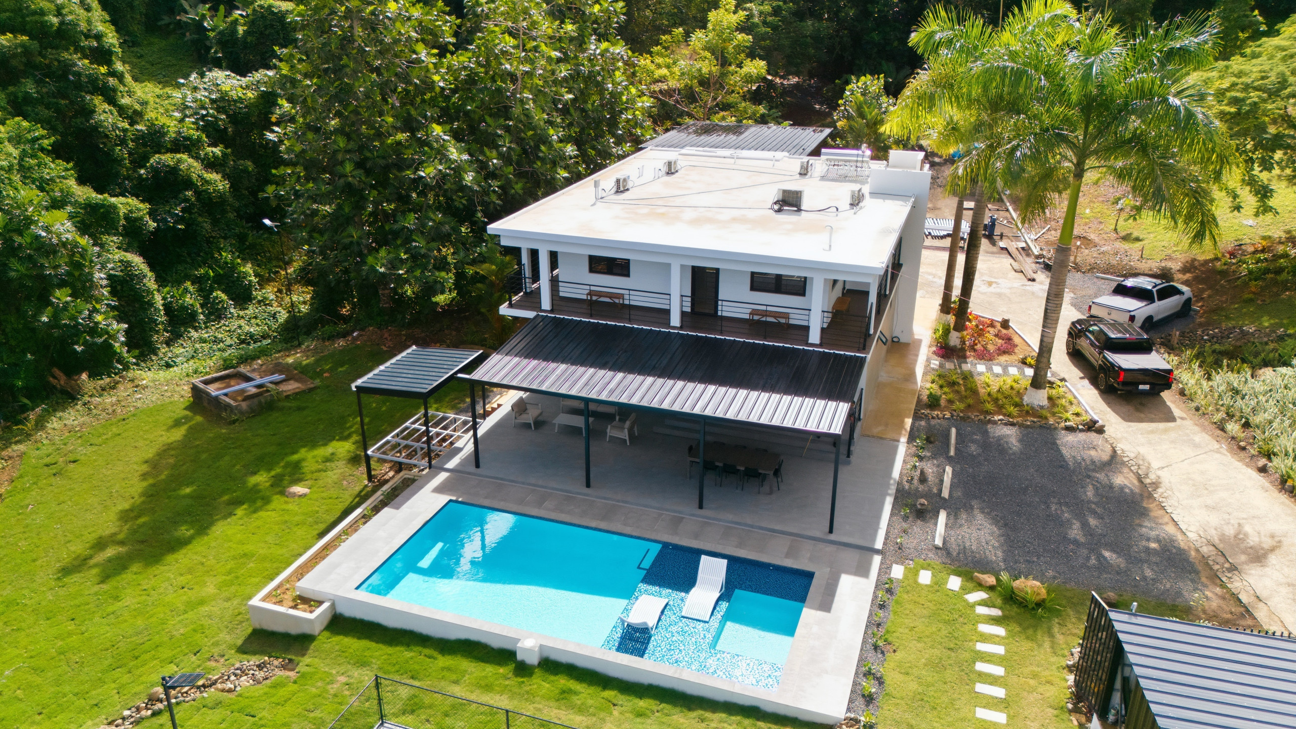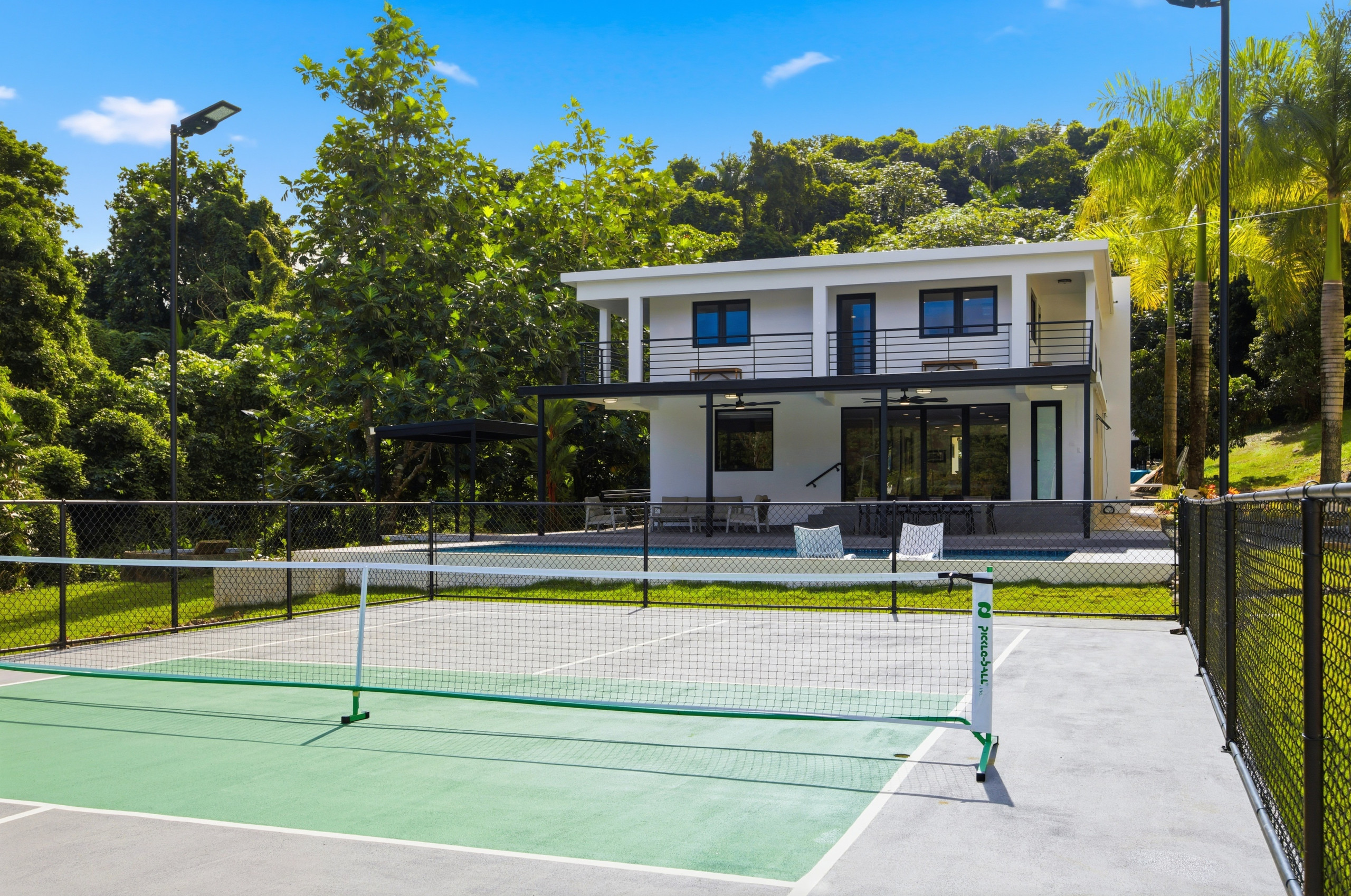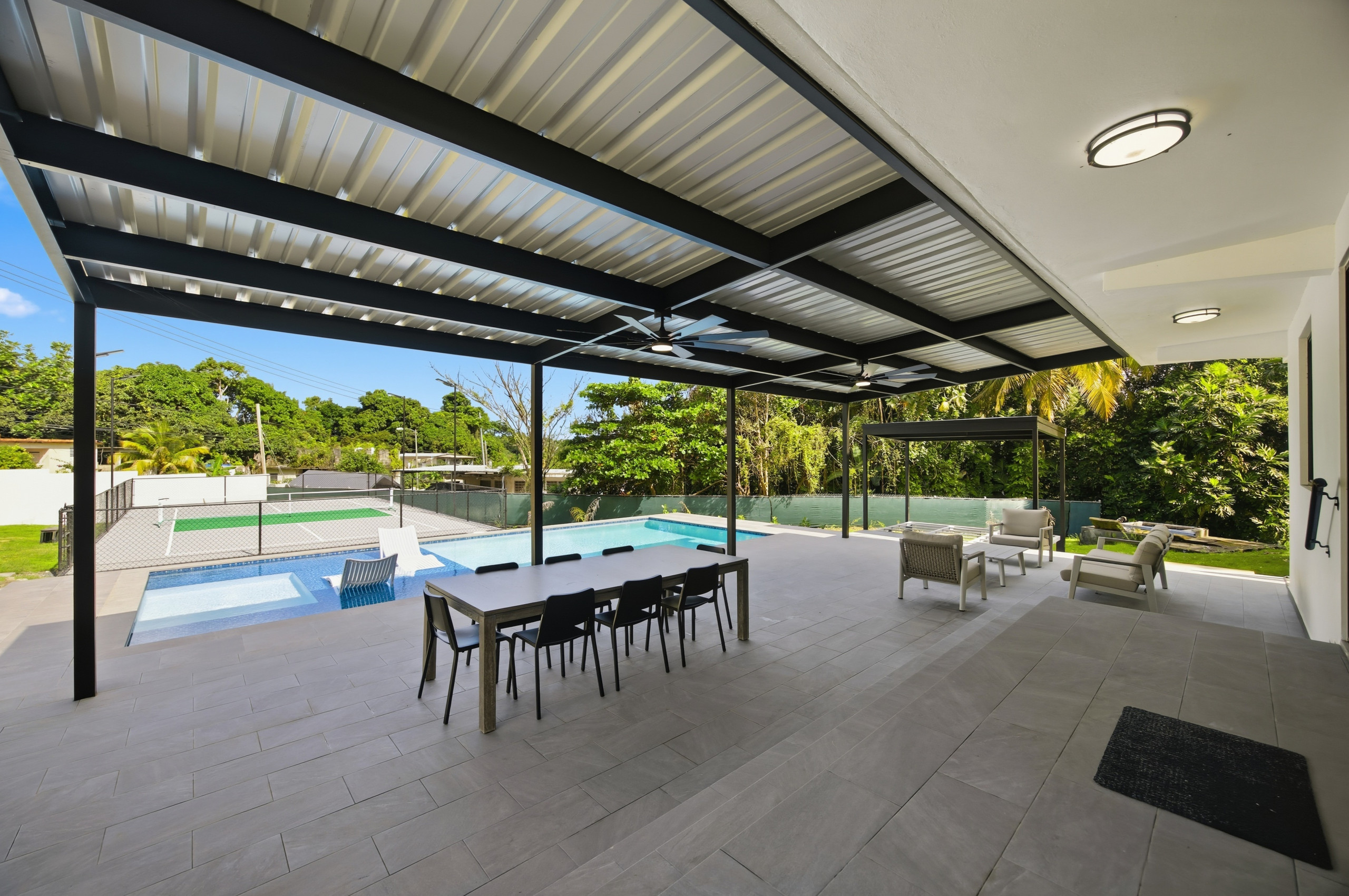 Disfrute de una piscina privada, jardín vallado, terraza, balcón y muebles de exterior, ideal para relajarse, socializar o disfrutar del clima cálido durante todo el año de Puerto Rico. La casa es apta para familias, con un área de juegos para niños y espacios exteriores seguros.