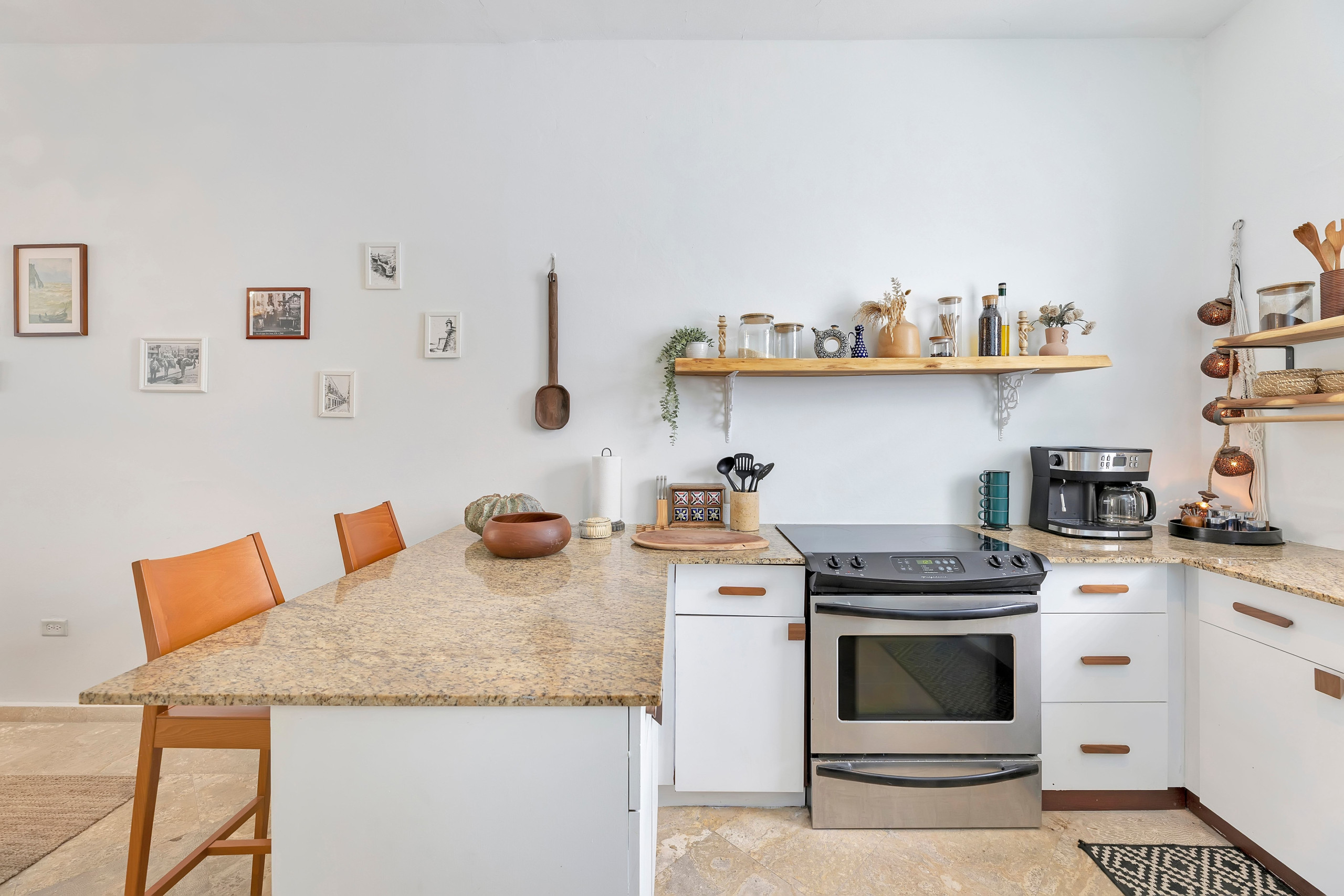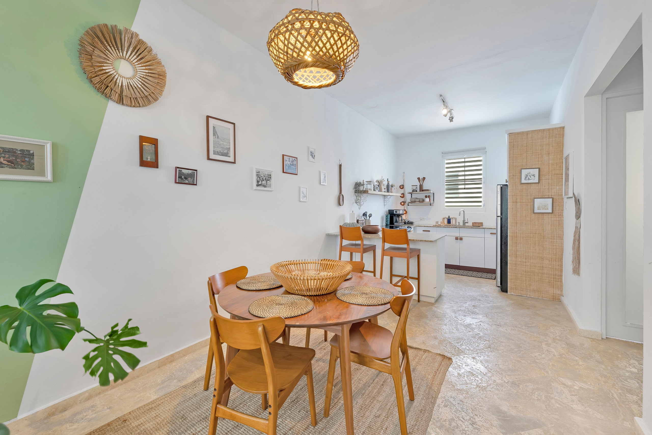 Designed for both convenience and functionality, the modern kitchen is fully equipped with everything you need to prepare meals during your stay. It includes a refrigerator, freezer, microwave, oven, blender, and coffee maker. The open layout allows you to enjoy the fresh Caribbean breeze while cooking, making it a perfect space for sharing breakfast, lunch, or dinner with family or friends.