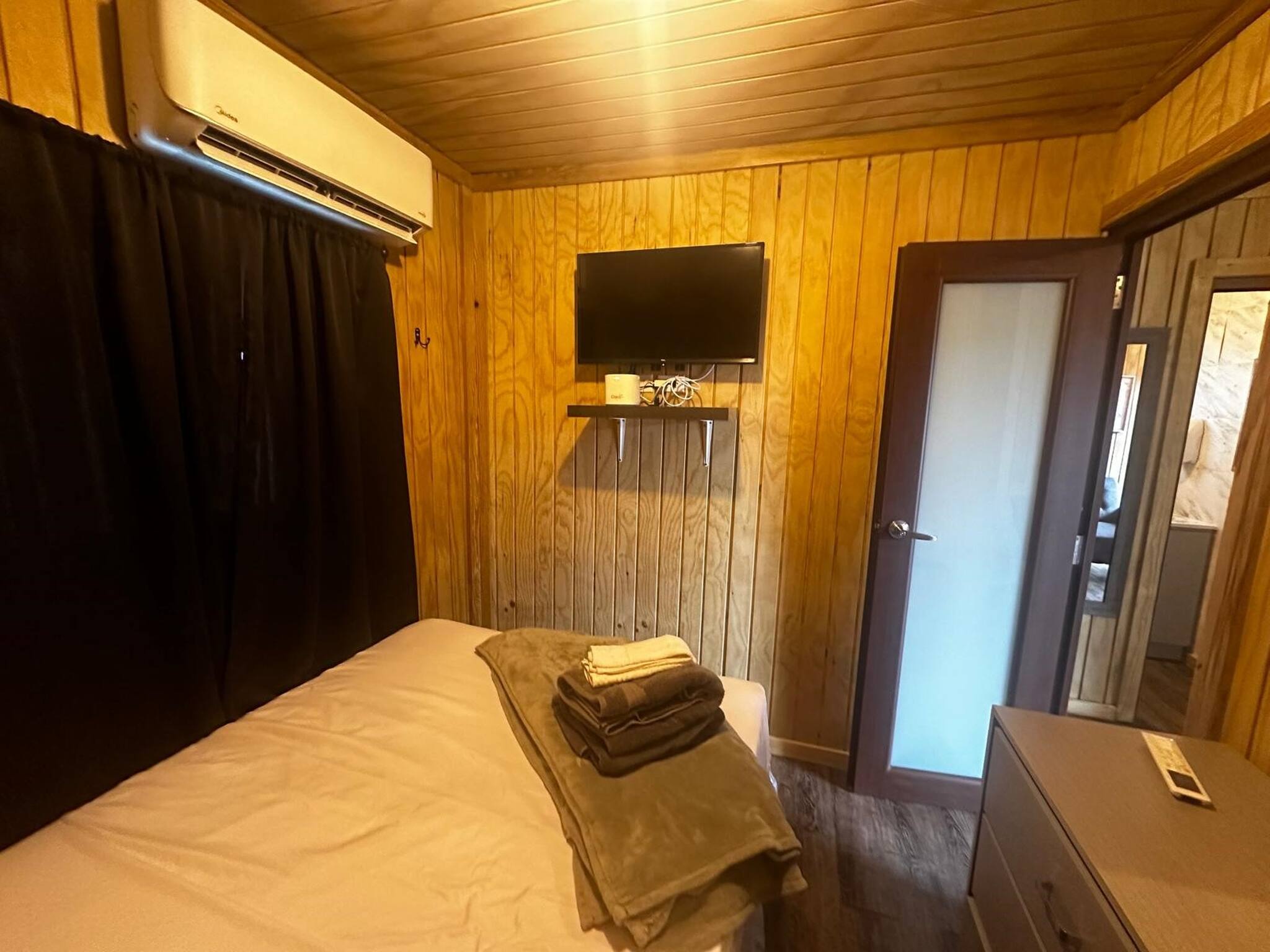 Disfruta de una estadía cómoda en esta acogedora casita ideal para hasta 4 personas. El espacio cuenta con un dormitorio privado y un sofá cama en la sala.