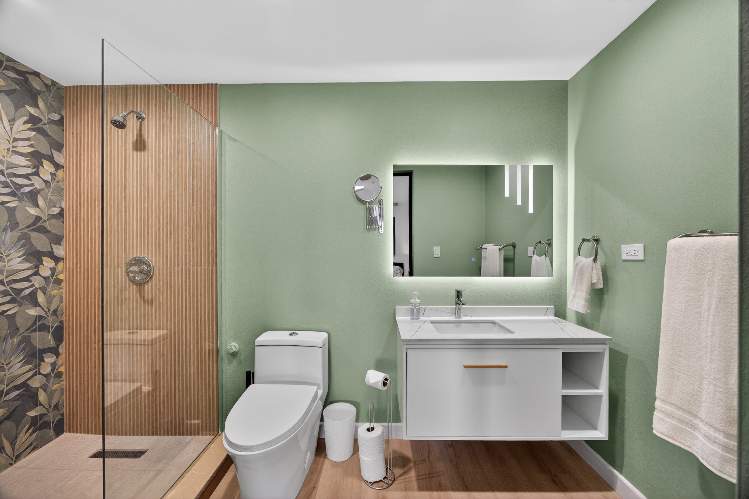 Additional amenities include a washer and dryer, BBQ grill, mini bar, iron, hair dryer, and an electric anti-mosquito device for added comfort. Guests also enjoy private on-site open-air parking, making arrivals and departures easy for multiple vehicles.